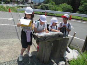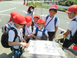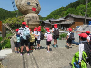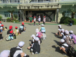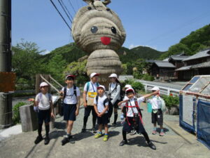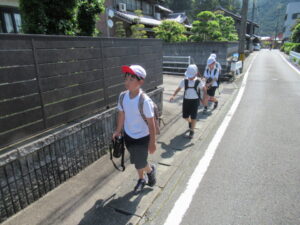 たてわり班で協力しながら仁柿小学校へ・・・